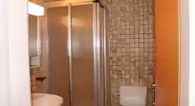 WC/Dusche: Dusche, Waschbecken, Toilette, Haarföhn
